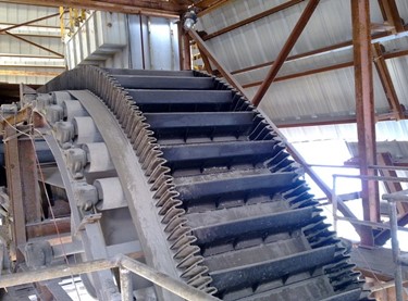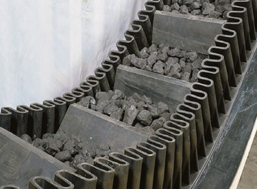 Эти конвейеры имеют гибкие гофрированные боковины по краям ленты, образующие карманы, предотвращающие просыпание материала. Равномерно расположенные выступы или скребки на ленте помогают поднимать и перемещать материал, особенно на крутых склонах, обеспечивая надёжное сцепление.