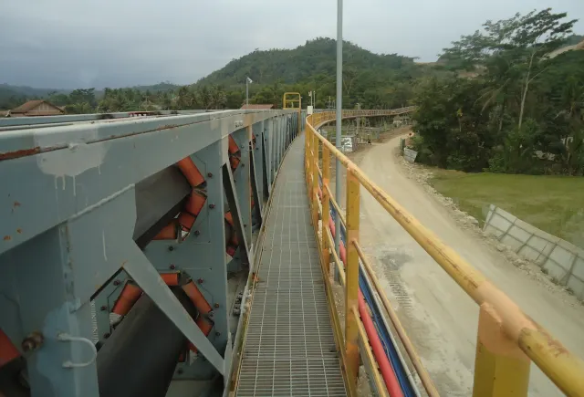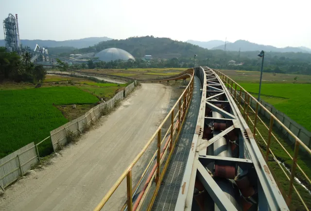 Конвейерная лента имеет форму трубы, создавая полностью закрытую систему. Такая конструкция помогает удерживать пыль, защищать окружающую среду и безопасно транспортировать материалы, снижая воздействие на окружающую среду по всему маршруту.