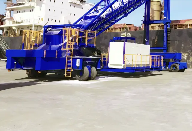 Судопогрузчик с изогнутой стрелой предлагает гибкие решения для любых задач погрузки. Полностью мобильное шасси позволяет работать на любом причале. Производительность погрузки достигает 2000 т/ч. Мы предлагаем мобильные судопогрузочные системы, подходящие для различных причалов, производительности, сыпучих материалов и размеров судов.